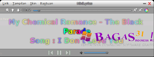 Selamat Siang Sobat BAGAS31. Kali ini saya akan share sebuah software yang mungkin sudah tidak asing lagi buat anda, apa lagi yang hobi dengerin musik di komputer. Minilyrics 7.4.10 Full Loader, mungkin dari namanya saja kita sudah bisa menebak apa fungsi dari Software ini. Minilyrics 7.4.10 Full Loader ini berfungsi untuk mencari dan menampilkan lyric lagu yang sedang anda mainkan, sehingga bisa membantu kita untuk berkaraoke ria tanpa takut salah liricnya. Di versi yang terbaru ini tidak ada perbedaan yang mencolok dengan versi sebelumnya, hanya saja menambah integrasi terhadap media player saja. Jadi siapa yang berminat, Silahkan di download..!